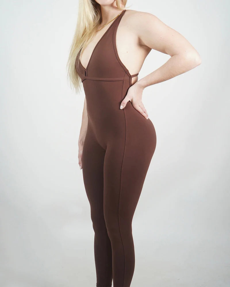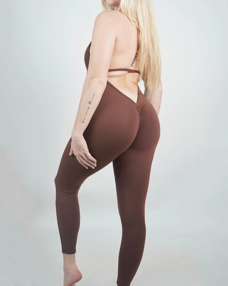 Embrace your inner risk-taker and stand out from the crowd in this hot new V-Neck Sleeveless Halter Backless Jumpsuit! With its sexy, party-ready look, this bold statement piece is perfect for making a lasting impression. Ruched, push up design make it the ideal choice for casual or nightlife occasions. Take the plunge and own the night!