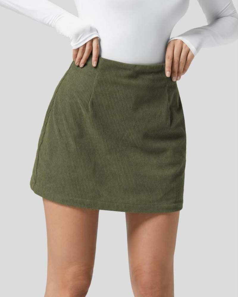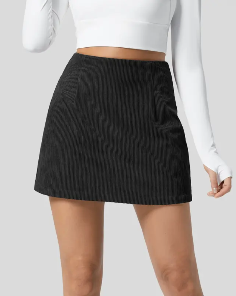 High waist design that offers support & comfort, without sacrificing on style.·The invisible zipper makes it easy to put on and take off.·Built-in shorts for comfort & coverage, to keep you confident for movement.·Solid color designs that are simple yet effortlessly stylish.·Mini-length design that hits right at the thigh.·A-line design that widens out from the waist.·Textured corduroy fabric provides versatile wear so you can dress it up or down, however you like!Notification·Logo has been integrated, some styles/colorways may vary. It's possible some items you receive may or may not have the brand logo.