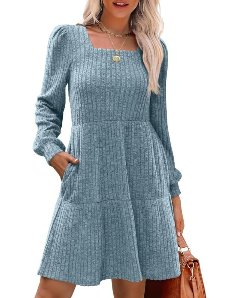 ? Square Neck Lantern Sleeve Dress ?Flowy, Flirty & Forever Comfy!*(If you prefer a loose or oversized look, we recommend sizing up 1–2 sizes.)*? Fabric & Feel:25% Rayon, 70% Polyester, 5% Spandex✔️ Lightweight and stretchy — moves with you all day✔️ Butter-soft touch — gentle on sensitive skin✔️ Breathable and flowy — no cling, all elegance