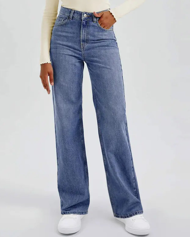 Elevate your street style with our Shaperlady high-waist jeans. Perfect for a trendy look, featuring a wide-leg design for a modern fit.