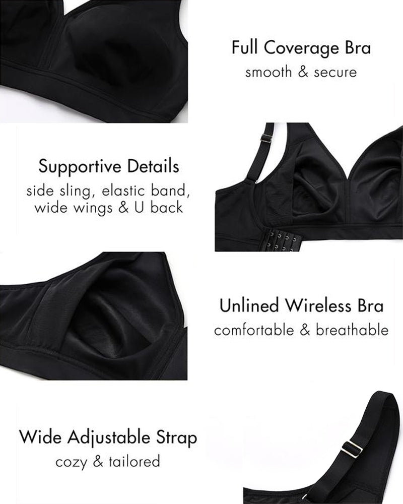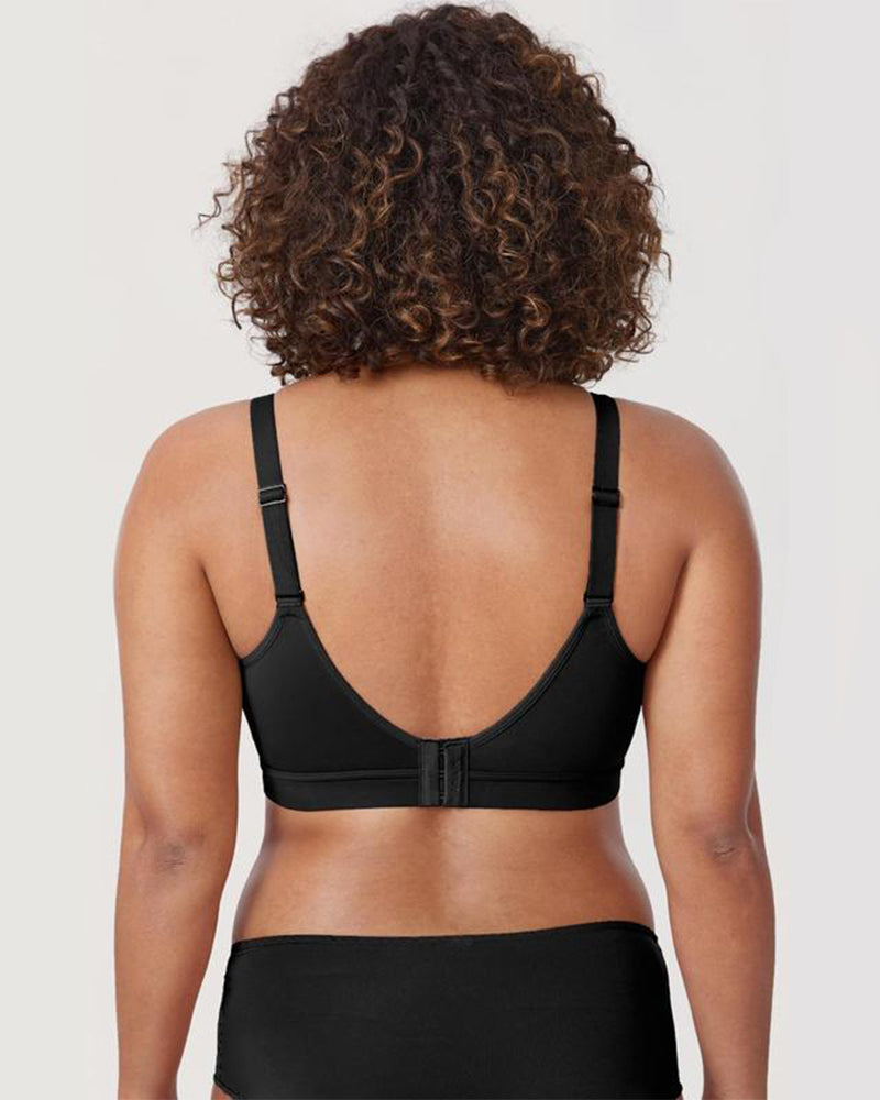 Soft, adjustable elastic straps to customize fit and comfort and the padded hook-and-eye closure is pillow-soft.