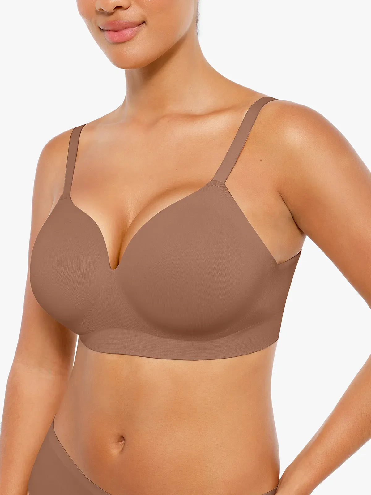 Enjoy the perfect blend of structure and softness. The fixed cupsgently shape and lift, while the wireless design ensures all-daycomfort. Say goodbye to digging wires-hello to a sculpted silhouettethat feels like a second skin.